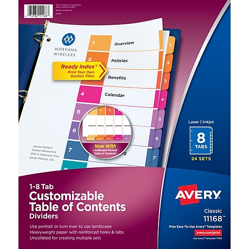 Amazon Com Avery 8 Tab Binder Dividers Easy Print Apply Clear Label Strip Index Maker Multicolor Tabs 25 Sets 11424 Binder Index Dividers Office Products