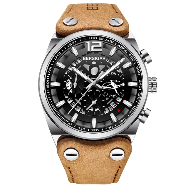 Men S Watch Bersigar Military Sports Black Hollow Dial Leather Strap Chronograph Analog Quartz Watch Waterproof Wristwatches Quartz Watches Aliexpress