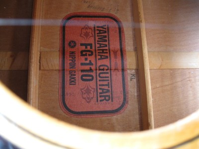 Yamaha fg-110 tan label Fg-110. So much for my advice of demo demo demo. The sound is good and if you are like me short arms small hands and small fingers it is great for reach.