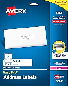 Amazon Com Avery Address Labels With Sure Feed For Laser Printers 1 X 4 500 Labels Permanent Adhesive 5261 White Address Labels Office Products