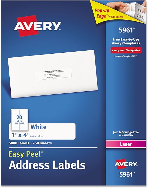 Amazon Com Avery 5161 Easy Peel Address Labels Laser Print 1 Inch X 4 Inch White 2000 Box Office Products
