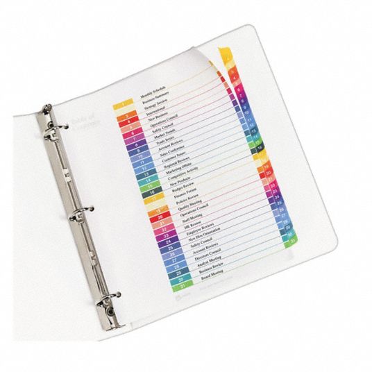 Avery Binder Divider With 31 Preprinted Tabs Multicolor 1 To 31 Table Of Contents 8 1 2 In X 11 In 6xvu7 7278211129 Grainger
