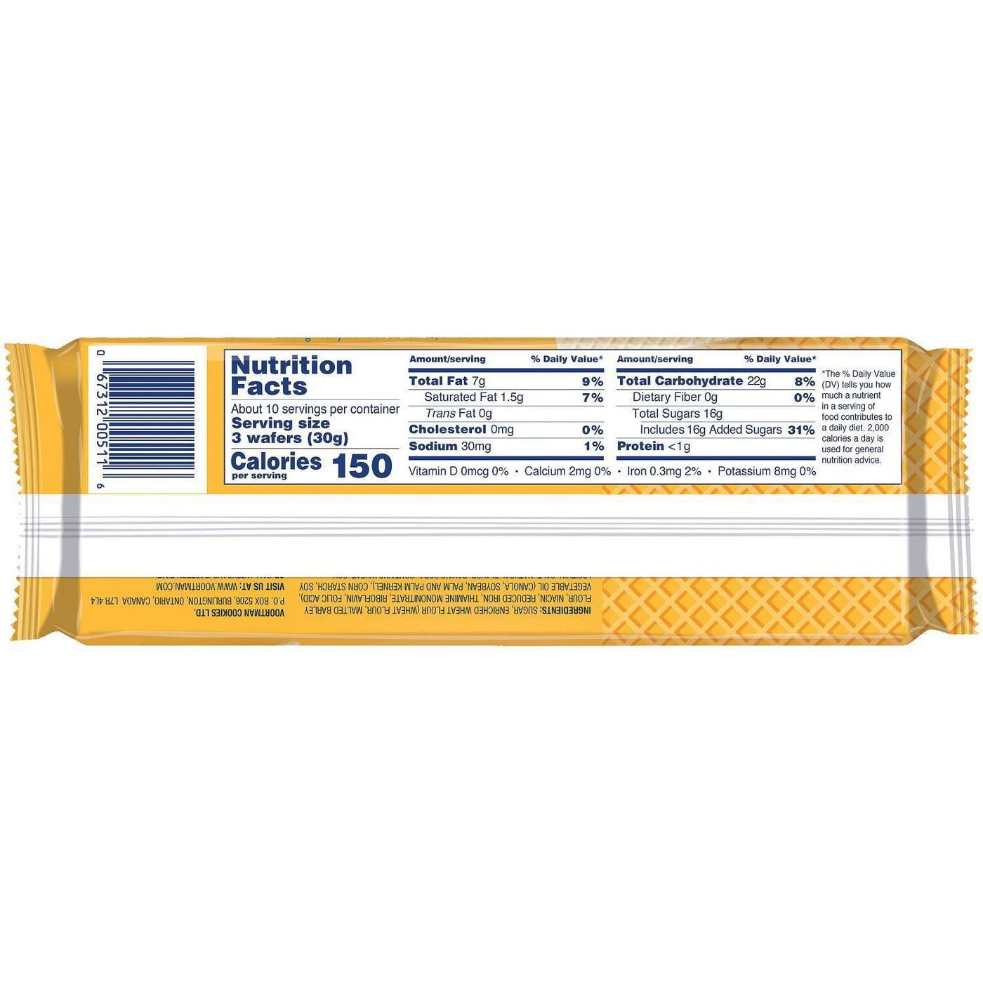 Enriched Flour Wheat Flour Niacin Reduced Iron Thiamine Mononitrate Vitamin B1 Riboflavin Vitamin B2 Folic Acid Sugar Soybean Oil High Fructose Corn Syrup Partially Hydrogenated Cottonseed Oil Whey from Milk Eggs Natural and Artificial Flavor Salt Leavening Baking Soda Calcium Phosphate Mono- and Diglycerides Emulsifier. 38 fat 59 carbs 3 protein. Entice Customers with the 1 Brand of Vanilla Wafers 1.