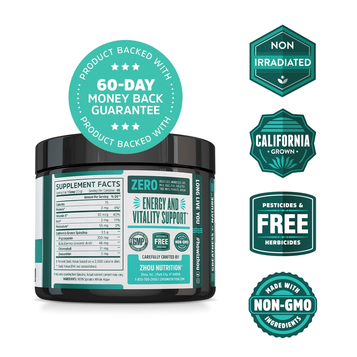 Spirulina Powder For Energy And Vitality 6 Oz By Zhou Nutrition Walmart Com Walmart Com