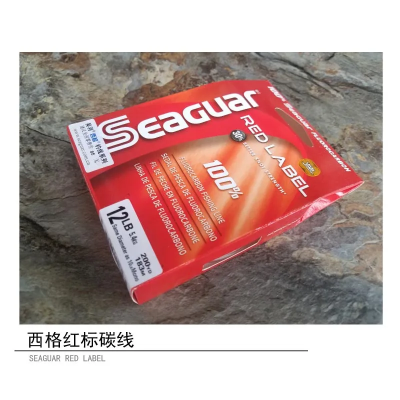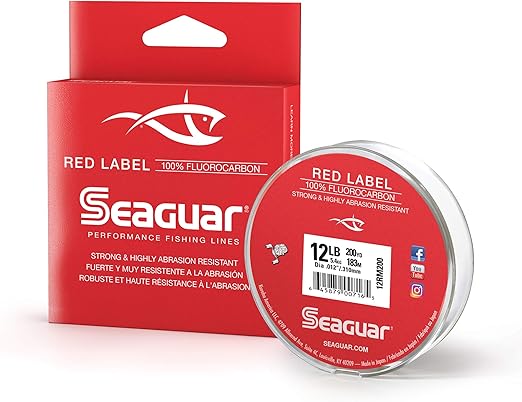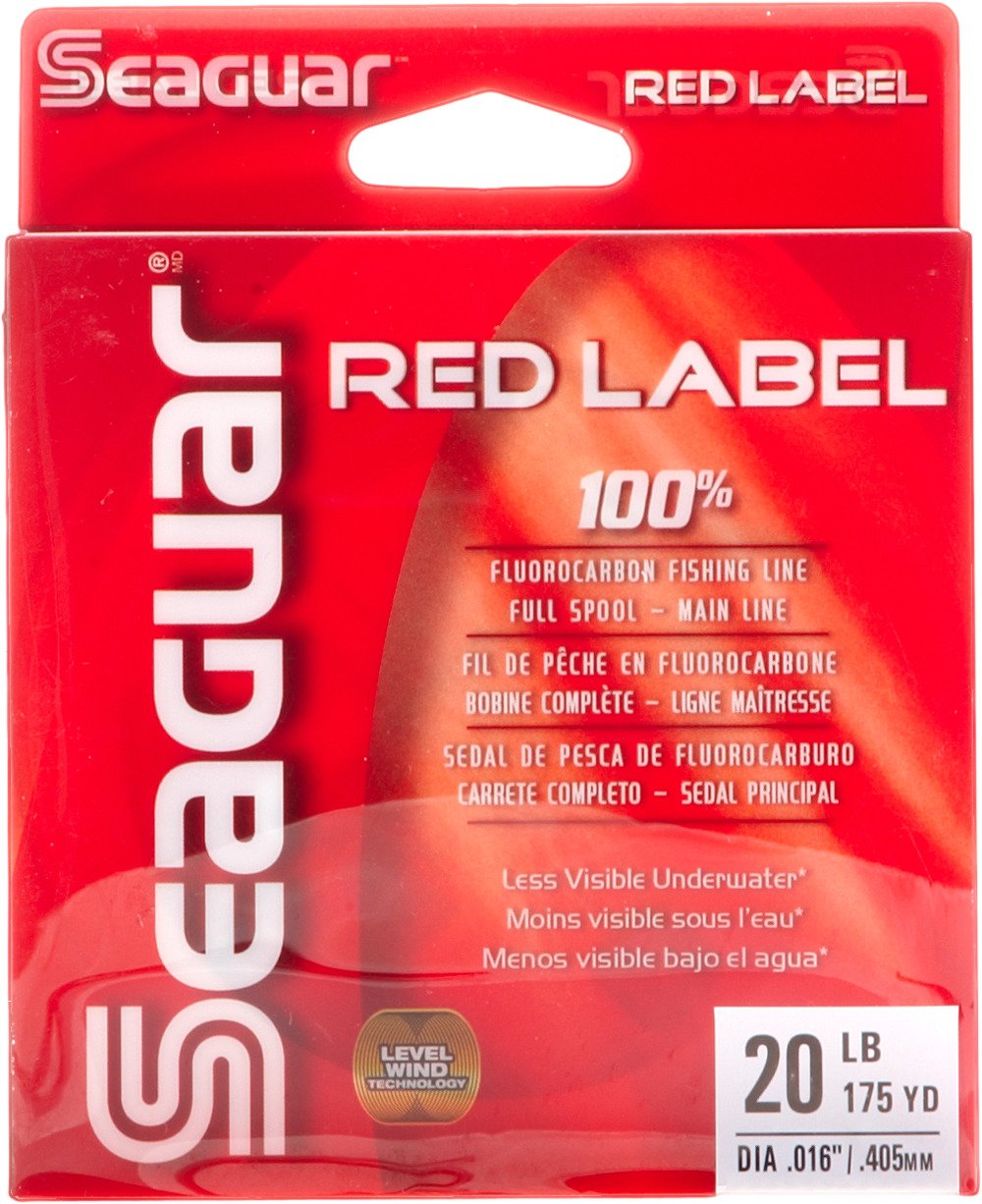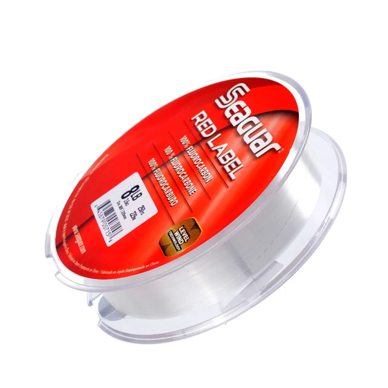 Seaguar red label Re. Its made with 100 fluorocarbon resins and Seaguars extrusion process for. Originally the color red began showing up on lures then on hooks.