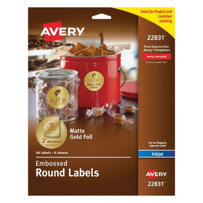 But once you feed the actual sticker not only does it stick inside the printers roller it sort of slides and prints incorrectly. Shop Staples for Avery Printable Embossed Foil Round Labels 2 Diameter Gold 96 Customizable LabelsPack 22831 and enjoy fast and free shipping on qualifying orders. Featuring an Easy Peel sheet and a Pop-up Edge this set of labels is designed for quick efficient application.
