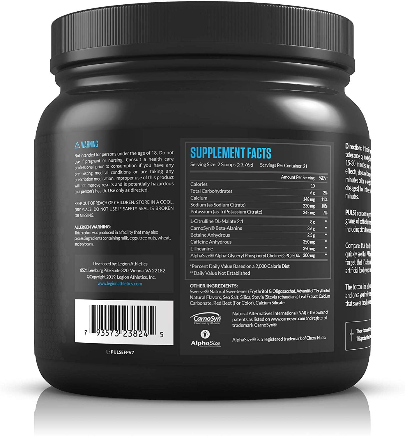 Legion Pulse Pre Workout Supplement All Natural Nitric Oxide Preworkout 21 Serv Walmart Com Walmart Com