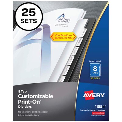 Avery Print On Dividers 8 Tab White 25 Sets 11554 Quill Com