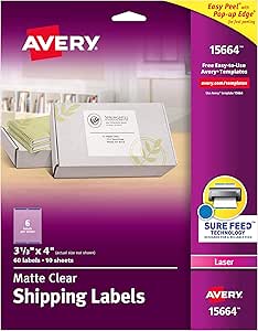 Avery Clear Easy Peel Shipping Labels For Laser Printers 3 1 3 X 4 Box Of 60 15664 White Office Products Amazon Com