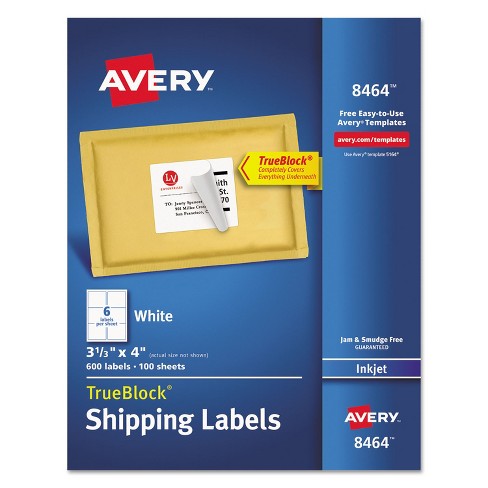 Avery Shipping Labels With Trueblock Technology Inkjet 3 1 3 X 4 White 600 Box 8464 Target