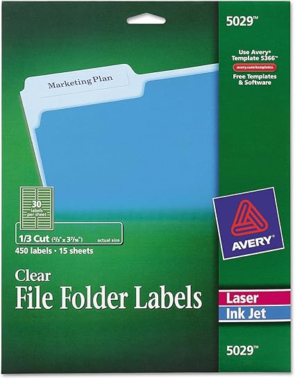 Avery 7278205029 16 10 Avery Clear File Folder Labels For Laser And Inkjet Printers 5029 2 3 X 3 7 16 Pack Of 450 In 2021 File Folder Labels Folder Labels Inkjet Labels