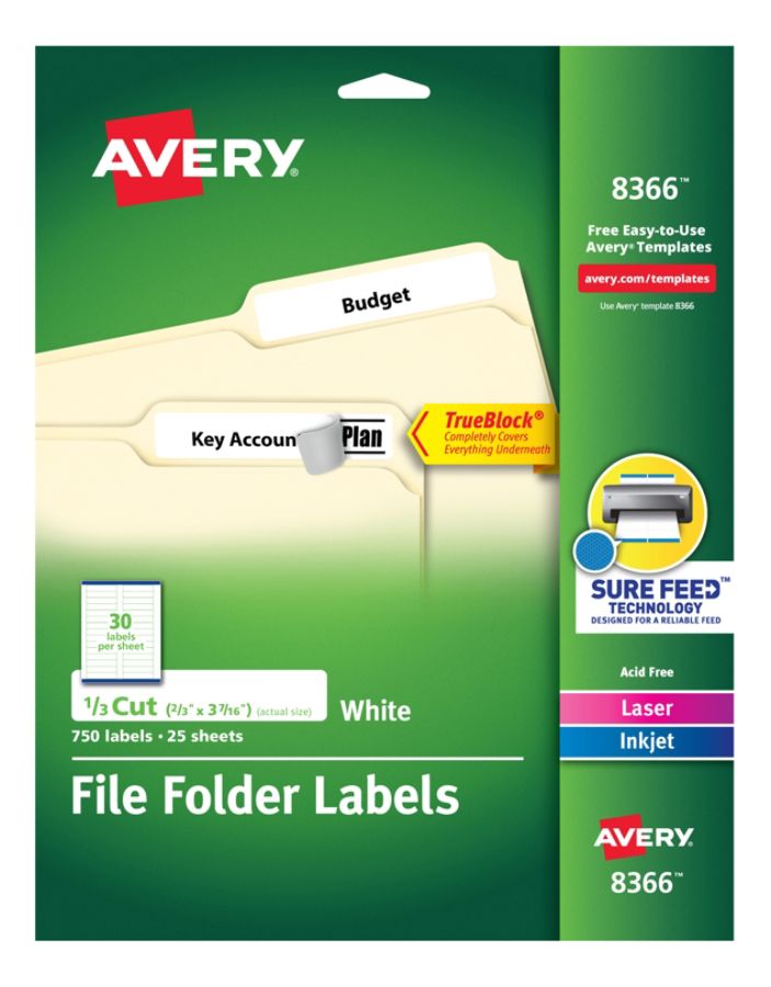 Amazon Com Avery Trueblock File Folder Labels Sure Feed Technology Permanent Adhesive White 2 3 X 3 7 16 1 800 Labels 75366 File Folder Labels Office Products