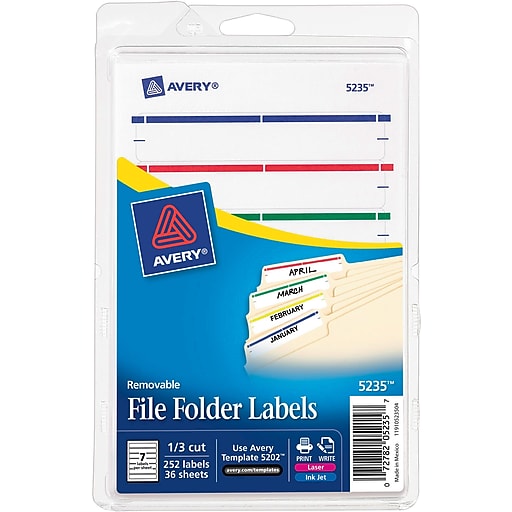 Avery 6466 Removable 1 3 Cut Inkjet Laser Printable File Folder Labels Assorted 750 Pack Formydesk Com