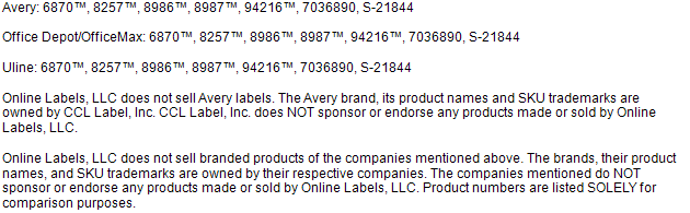 The labels are 1-34 x 12 inch and work with Avery 5167 5267 5667 5967 6467 8167 and 8667. Simply type in the software code in the field here under then you will be transferred to a Landing page where you can download templates exactly matching your Avery product. 48 out of 5 stars.