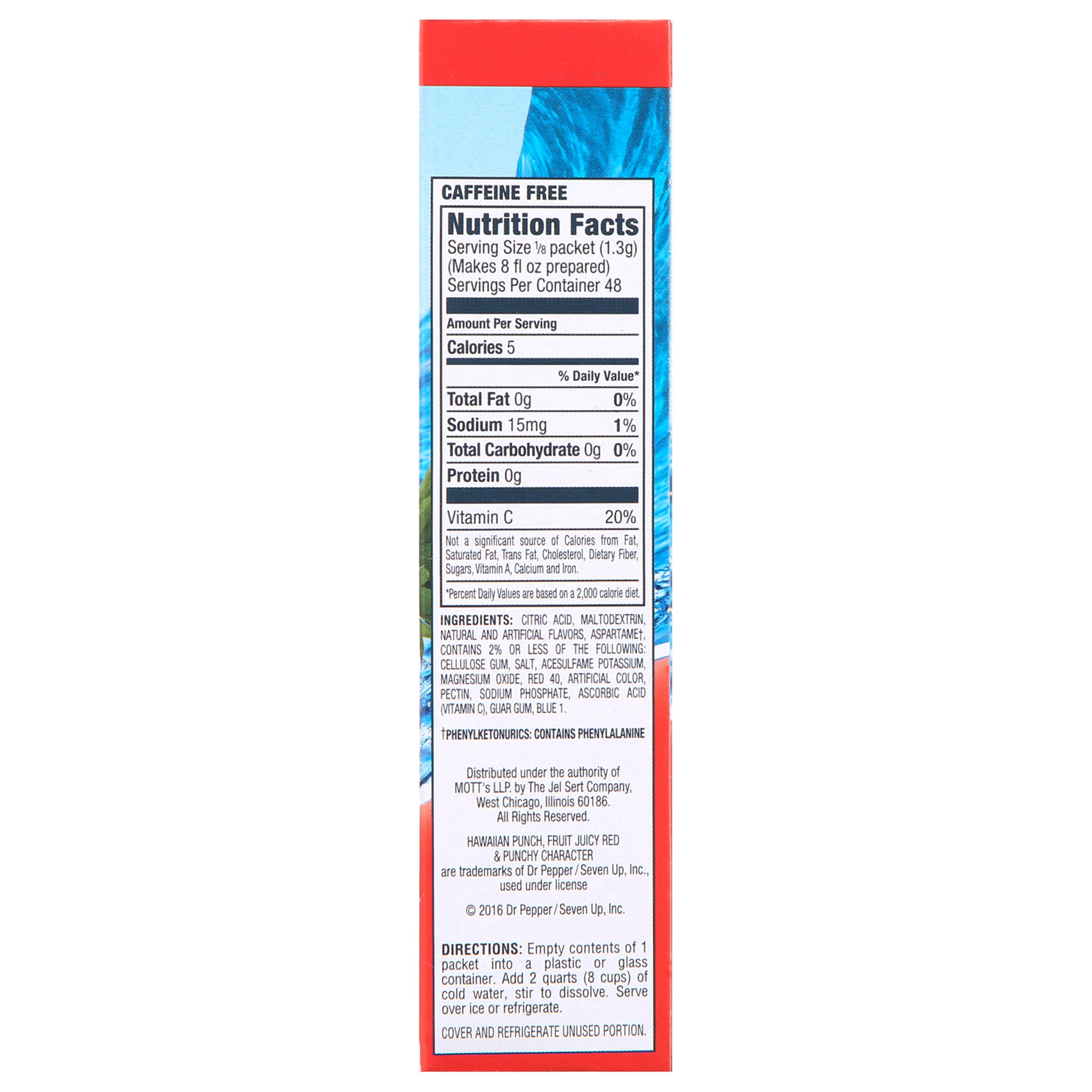 Nutrition per 8 fl oz. Hawaiian Punch Fruit Juicy Red Powder Drink Mix - 12 boxes 96 sticks Sugar Free Delicious Excellent source of Vitamin C Makes 96 flavored water beverages. 19 rows Nutrition Facts.