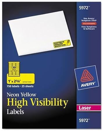 This item Avery Neon Address Labels with Sure Feed for Laser Printers 1 x 2 58 750 Yellow Stickers 5972 Amazon Basics Neon Laser Labels Rectangle 1 x 2-58 Fluorescent Magenta 750-Pack Avery Address Labels with Sure Feed for Laser Inkjet Printers 1 x 2-58 750 Labels. Up to 6 cash back Avery High-Visibility Permanent Laser ID Labels 5972 1 x 2 58 Yellow Pack Of 750. Please enter a valid template SKU.