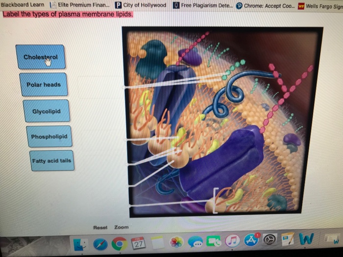 Label the types of plasma membrane lipids. Polar heads Phospholipid Glycolipid Cholesterol Fatty acid tails Reset Zoom. The detailed organization of cellular membranes remains rather elusive.
